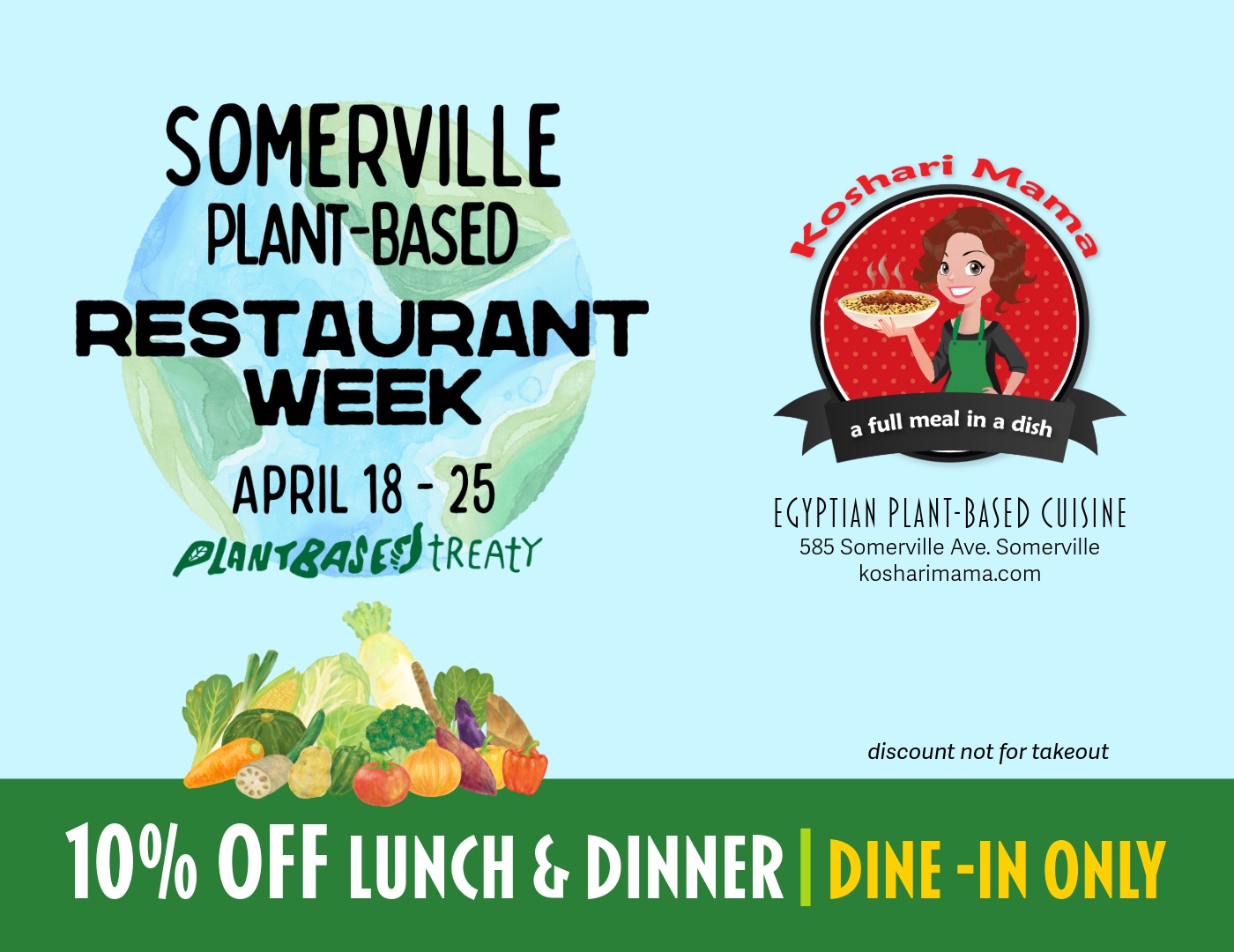 To celebrate Earth Month, we are participating in Somerville's first restaurant week for plant-based local eateries. DINE-IN only.